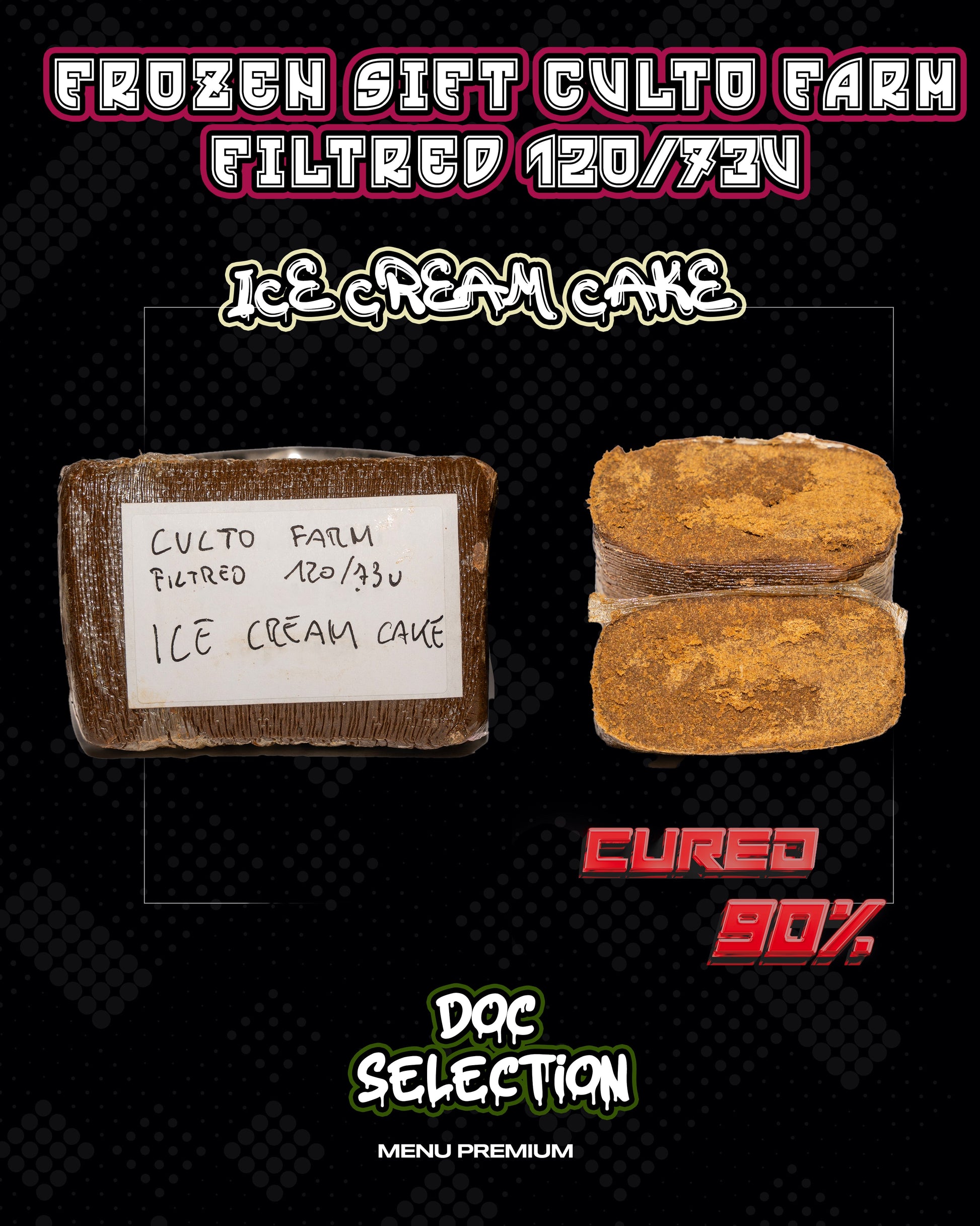 ย Linea frozen 120/73u di casa Culto Farm, hash filtrato con maglie 120/73u in cella frigo levando ben 400gr di scarto vegetale da un kg di polvere sana, polveri date da semi originali dello strain ICE CREAM CAKE , questa categoria di prodotto รจ consigliataย ai palati piรน esigenti abituati a livelli di terpene alto che gia hanno esperienza e dimestichezza con alti contenuti di thc.ย ย